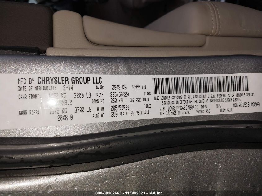 About this 2014 JEEP GRAND CHEROKEE OVERLANDThis 2014 JEEP GRAND CHEROKEE OVERLAND is part of our AUTOMOBILE vehicles. It's VIN code is - 1C4RJECG4EC480463. Join the auto auction to bid on this 2014 JEEP GRAND CHEROKEE OVERLAND. Please note, the following damage may be present on the vehicle: LEFT SIDE, which can be viewed more closely by examining the photos included on this page.As of now, the sale date is .Good luck bidding on this 2014 JEEP GRAND CHEROKEE OVERLAND!