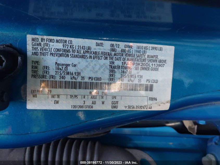 About this 2013 FORD FOCUS SEThis 2013 FORD FOCUS SE is part of our AUTOMOBILE vehicles. It's VIN code is - 1FADP3K20DL113907. Join the auto auction to bid on this 2013 FORD FOCUS SE. Please note, the following damage may be present on the vehicle: RIGHT FRONT and Suspension, which can be viewed more closely by examining the photos included on this page.As of now, the sale date is 09.01.2024 14:30.Good luck bidding on this 2013 FORD FOCUS SE!