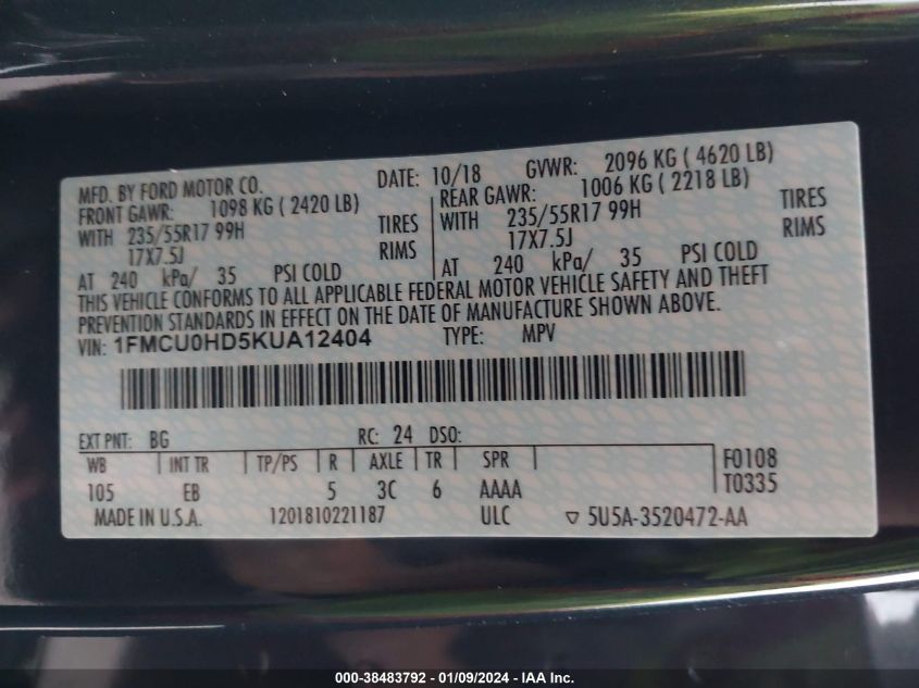 1FMCUOHD5KUA1240