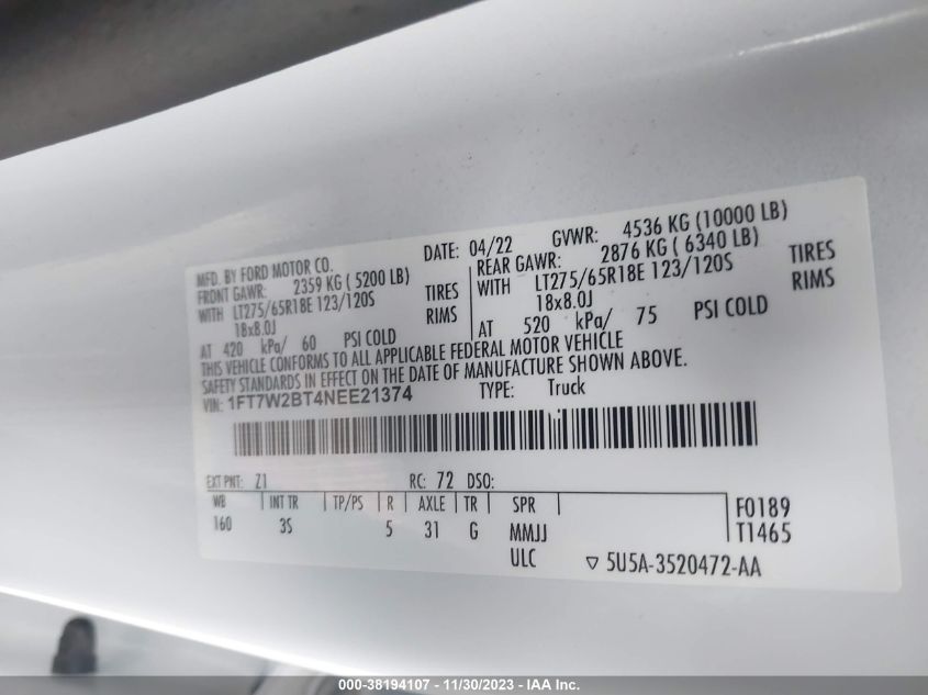 1FT7W2BT4NEE2137