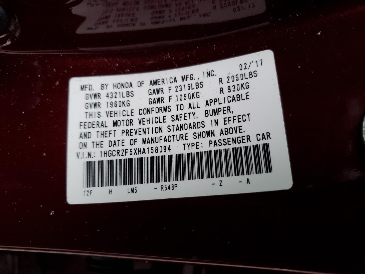 About this 2017 HONDA ACCORD SPOThis 2017 HONDA ACCORD SPO is part of our AUTOMOBILE vehicles. It's VIN code is - 1HGCR2F5XHA158094. Join the auto auction to bid on this 2017 HONDA ACCORD SPO. Please note, the following damage may be present on the vehicle: FRONT END and REAR END, which can be viewed more closely by examining the photos included on this page.As of now, the sale date is 15.04.2024 14:00.Good luck bidding on this 2017 HONDA ACCORD SPO!