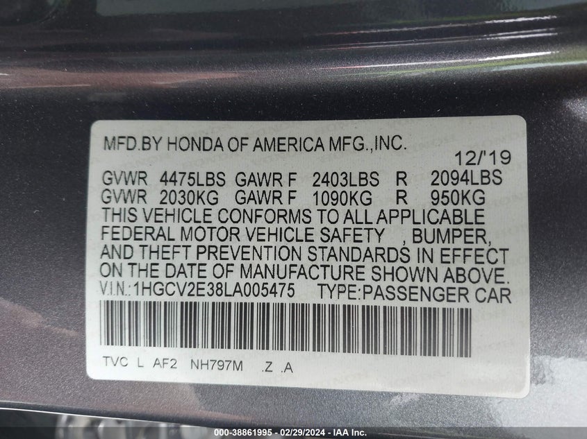 About this 2020 HONDA ACCORD SPORT 2.0TThis 2020 HONDA ACCORD SPORT 2.0T is part of our AUTOMOBILE vehicles. It's VIN code is - 1HGCV2E38LA005475. Join the auto auction to bid on this 2020 HONDA ACCORD SPORT 2.0T. Please note, the following damage may be present on the vehicle: FRONT END, which can be viewed more closely by examining the photos included on this page.As of now, the sale date is .Good luck bidding on this 2020 HONDA ACCORD SPORT 2.0T!