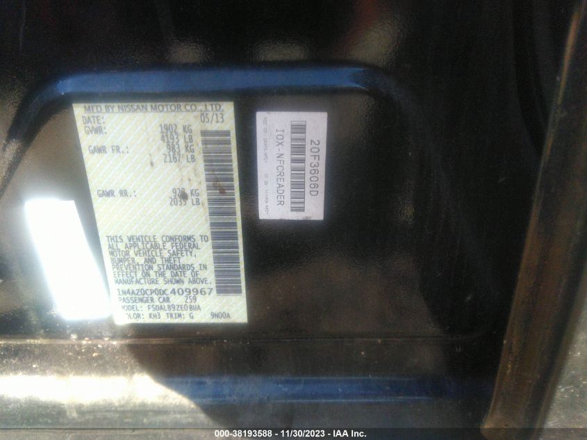 About this 2013 NISSAN LEAF SThis 2013 NISSAN LEAF S is part of our AUTOMOBILE vehicles. It's VIN code is - 1N4AZ0CP0DC409967. Join the auto auction to bid on this 2013 NISSAN LEAF S. Please note, the following damage may be present on the vehicle: ALL OVER, which can be viewed more closely by examining the photos included on this page.As of now, the sale date is .Good luck bidding on this 2013 NISSAN LEAF S!