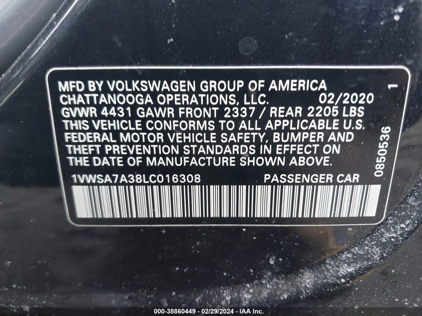 About this 2020 VOLKSWAGEN PASSAT 2.0T SEThis 2020 VOLKSWAGEN PASSAT 2.0T SE is part of our AUTOMOBILE vehicles. It's VIN code is - 1VWSA7A38LC016308. Join the auto auction to bid on this 2020 VOLKSWAGEN PASSAT 2.0T SE. Please note, the following damage may be present on the vehicle: FRONT END and Left Side, which can be viewed more closely by examining the photos included on this page.As of now, the sale date is .Good luck bidding on this 2020 VOLKSWAGEN PASSAT 2.0T SE!
