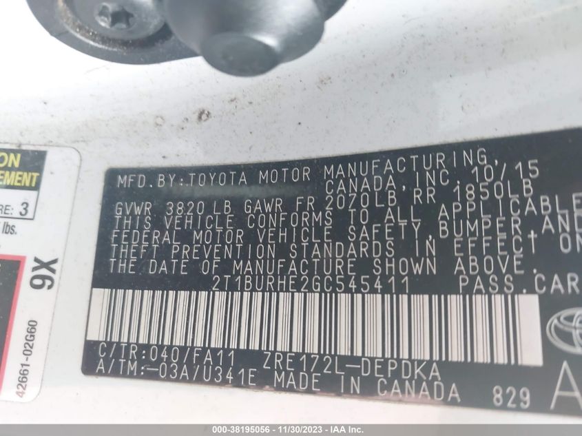 About this 2016 TOYOTA COROLLA LThis 2016 TOYOTA COROLLA L is part of our AUTOMOBILE vehicles. It's VIN code is - 2T1BURHE2GC545411. Join the auto auction to bid on this 2016 TOYOTA COROLLA L. Please note, the following damage may be present on the vehicle: FRONT END and Unknown, which can be viewed more closely by examining the photos included on this page.As of now, the sale date is 18.01.2024 14:30.Good luck bidding on this 2016 TOYOTA COROLLA L!