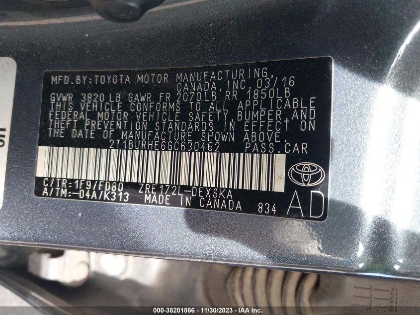 About this 2016 TOYOTA COROLLA S PLUSThis 2016 TOYOTA COROLLA S PLUS is part of our AUTOMOBILE vehicles. It's VIN code is - 2T1BURHE6GC630462. Join the auto auction to bid on this 2016 TOYOTA COROLLA S PLUS. Please note, the following damage may be present on the vehicle: REAR, which can be viewed more closely by examining the photos included on this page.As of now, the sale date is .Good luck bidding on this 2016 TOYOTA COROLLA S PLUS!