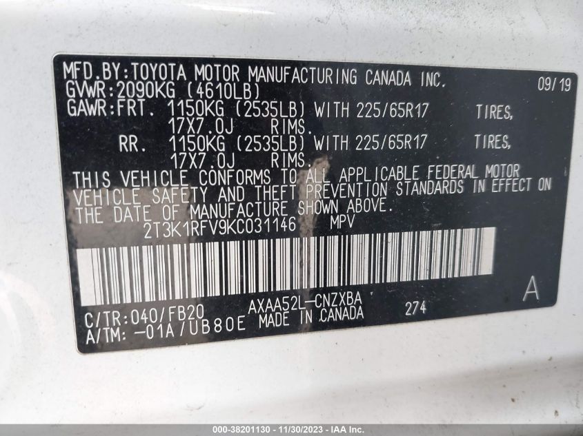 About this 2019 TOYOTA RAV4 LEThis 2019 TOYOTA RAV4 LE is part of our AUTOMOBILE vehicles. It's VIN code is - 2T3K1RFV9KC031146. Join the auto auction to bid on this 2019 TOYOTA RAV4 LE. Please note, the following damage may be present on the vehicle: REAR and Unknown, which can be viewed more closely by examining the photos included on this page.As of now, the sale date is .Good luck bidding on this 2019 TOYOTA RAV4 LE!