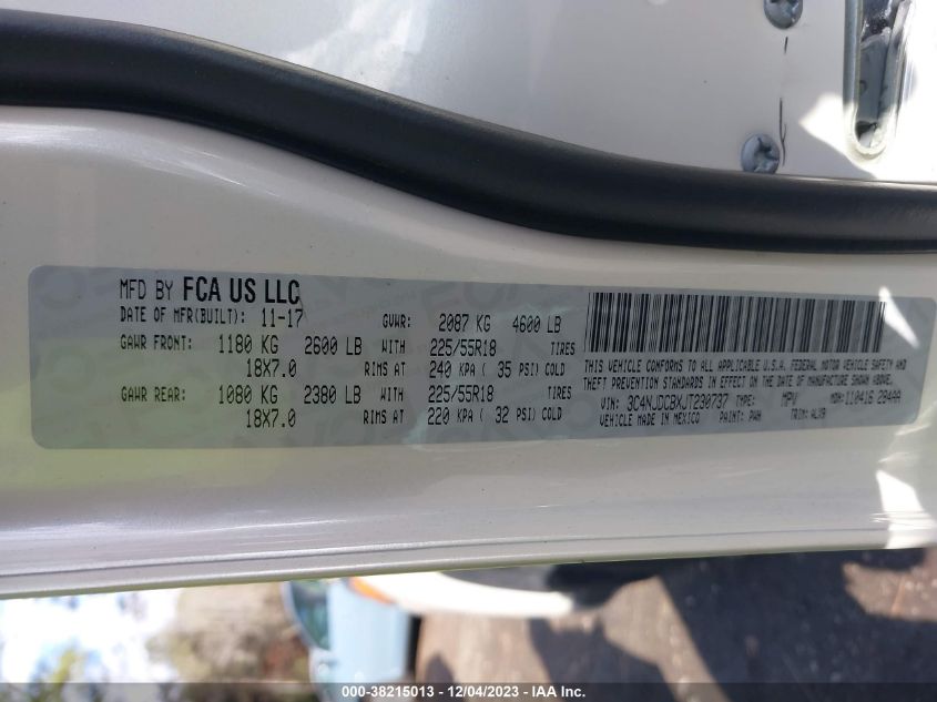 About this 2018 JEEP COMPASS LIMITED 4X4This 2018 JEEP COMPASS LIMITED 4X4 is part of our AUTOMOBILE vehicles. It's VIN code is - 3C4NJDCBXJT230737. Join the auto auction to bid on this 2018 JEEP COMPASS LIMITED 4X4. Please note, the following damage may be present on the vehicle: FRONT END and Right Side, which can be viewed more closely by examining the photos included on this page.As of now, the sale date is 06.02.2024 14:30.Good luck bidding on this 2018 JEEP COMPASS LIMITED 4X4!
