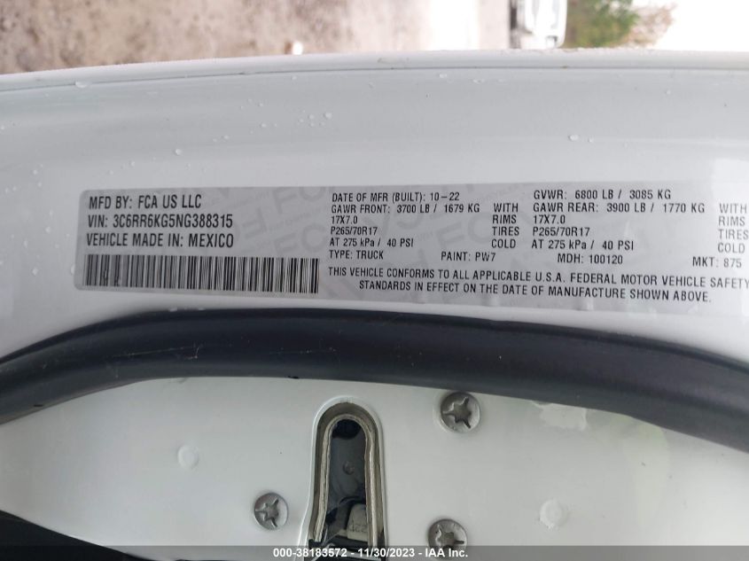 About this 2022 RAM 1500 CLASSIC TRADESMANThis 2022 RAM 1500 CLASSIC TRADESMAN is part of our AUTOMOBILE vehicles. It's VIN code is - 3C6RR6KG5NG388315. Join the auto auction to bid on this 2022 RAM 1500 CLASSIC TRADESMAN. Please note, the following damage may be present on the vehicle: FRONT END, which can be viewed more closely by examining the photos included on this page.As of now, the sale date is .Good luck bidding on this 2022 RAM 1500 CLASSIC TRADESMAN!