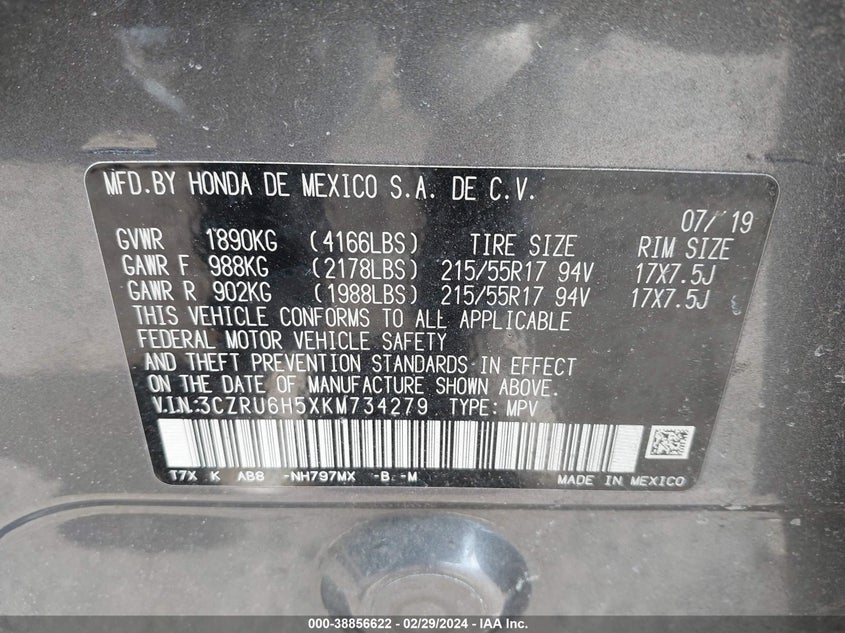 About this 2019 HONDA HR-V EXThis 2019 HONDA HR-V EX is part of our AUTOMOBILE vehicles. It's VIN code is - 3CZRU6H5XKM734279. Join the auto auction to bid on this 2019 HONDA HR-V EX. Please note, the following damage may be present on the vehicle: FRONT END, which can be viewed more closely by examining the photos included on this page.As of now, the sale date is .Good luck bidding on this 2019 HONDA HR-V EX!