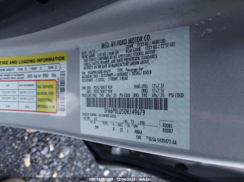 About this 2013 FORD FUSION HYBRID SEThis 2013 FORD FUSION HYBRID SE is part of our AUTOMOBILE vehicles. It's VIN code is - 3FA6P0LU5DR149679. Join the auto auction to bid on this 2013 FORD FUSION HYBRID SE. Please note, the following damage may be present on the vehicle: FRONT END, which can be viewed more closely by examining the photos included on this page.As of now, the sale date is 06.12.2023 14:30.Good luck bidding on this 2013 FORD FUSION HYBRID SE!