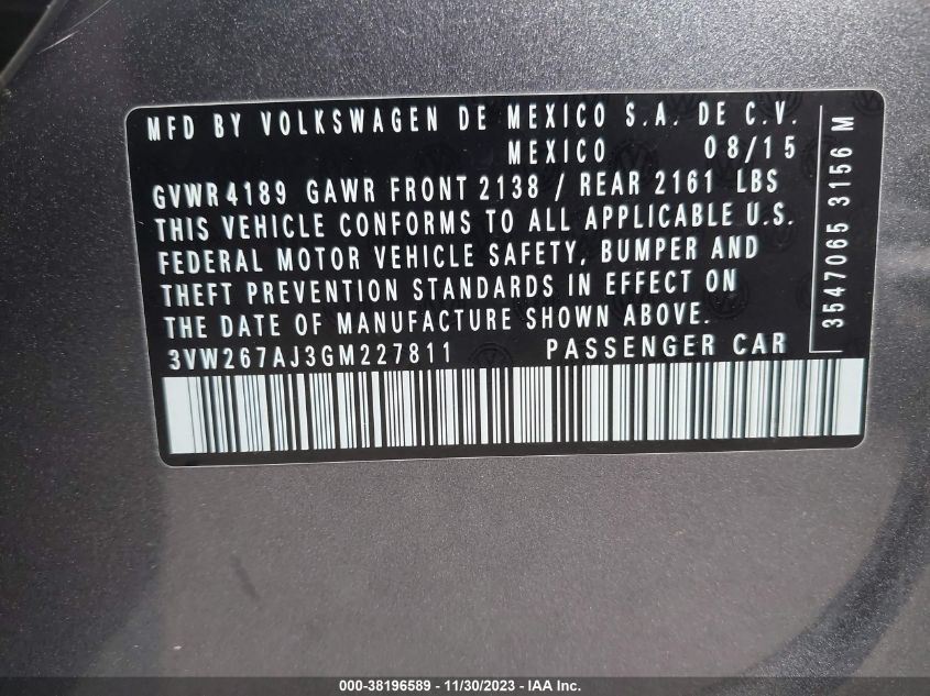 About this 2016 VOLKSWAGEN JETTA 1.4T SThis 2016 VOLKSWAGEN JETTA 1.4T S is part of our AUTOMOBILE vehicles. It's VIN code is - 3VW267AJ3GM227811. Join the auto auction to bid on this 2016 VOLKSWAGEN JETTA 1.4T S. Please note, the following damage may be present on the vehicle: LEFT SIDE and Mechanical, which can be viewed more closely by examining the photos included on this page.As of now, the sale date is 27.12.2023 17:30.Good luck bidding on this 2016 VOLKSWAGEN JETTA 1.4T S!