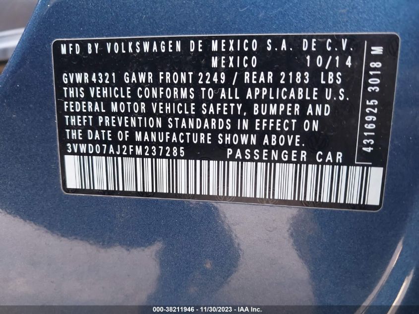 3VWD07AJ2FM23728
