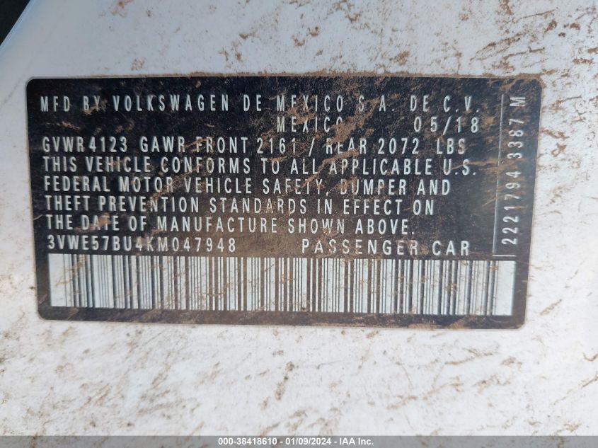 About this 2019 VOLKSWAGEN JETTA SELThis 2019 VOLKSWAGEN JETTA SEL is part of our AUTOMOBILE vehicles. It's VIN code is - 3VWE57BU4KM047948. Join the auto auction to bid on this 2019 VOLKSWAGEN JETTA SEL. Please note, the following damage may be present on the vehicle: ENGINE BURN, which can be viewed more closely by examining the photos included on this page.As of now, the sale date is .Good luck bidding on this 2019 VOLKSWAGEN JETTA SEL!