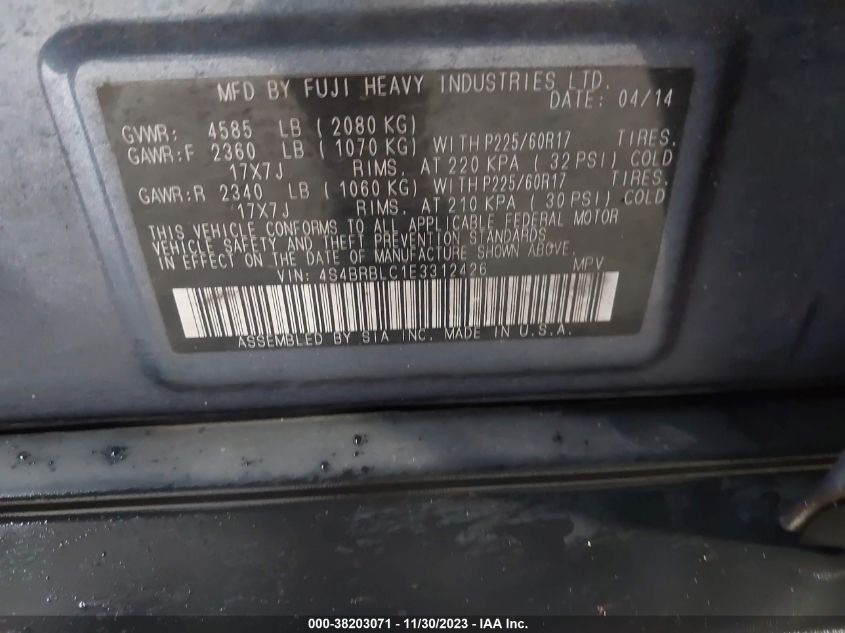 About this 2014 SUBARU OUTBACK 2.5I LIMITEDThis 2014 SUBARU OUTBACK 2.5I LIMITED is part of our AUTOMOBILE vehicles. It's VIN code is - 4S4BRBLC1E3312426. Join the auto auction to bid on this 2014 SUBARU OUTBACK 2.5I LIMITED. Please note, the following damage may be present on the vehicle: RIGHT FRONT and Suspension, which can be viewed more closely by examining the photos included on this page.As of now, the sale date is 09.01.2024 17:30.Good luck bidding on this 2014 SUBARU OUTBACK 2.5I LIMITED!