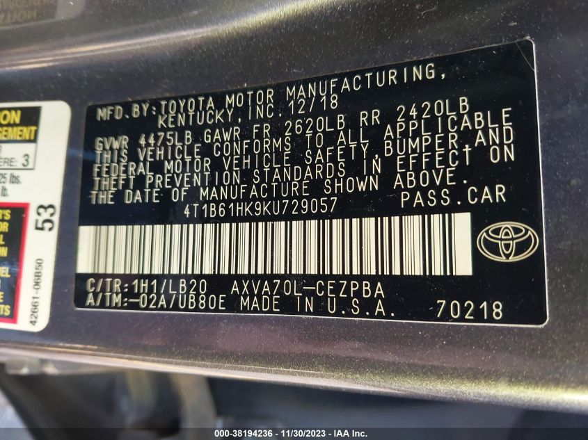 4T1B61HK9KU72905
