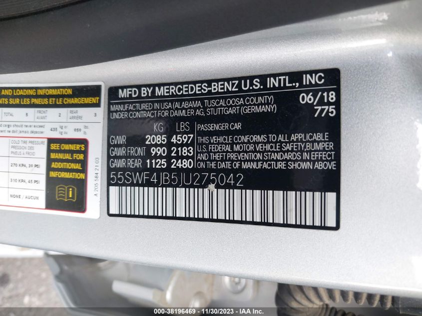 About this 2018 MERCEDES-BENZ C 300This 2018 MERCEDES-BENZ C 300 is part of our AUTOMOBILE vehicles. It's VIN code is - 55SWF4JB5JU275042. Join the auto auction to bid on this 2018 MERCEDES-BENZ C 300. Please note, the following damage may be present on the vehicle: LEFT FRONT and None, which can be viewed more closely by examining the photos included on this page.As of now, the sale date is .Good luck bidding on this 2018 MERCEDES-BENZ C 300!