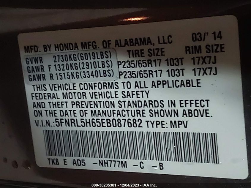 5FNRL5H65EB08768