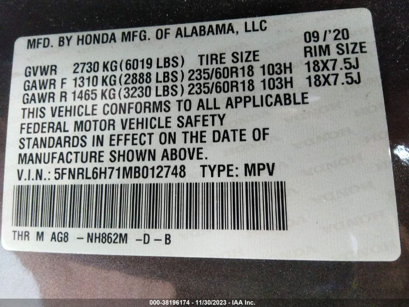 5FNRL6H71MB01274