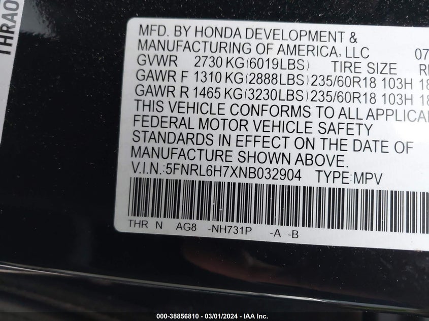 5FNRL6H7XNB03290