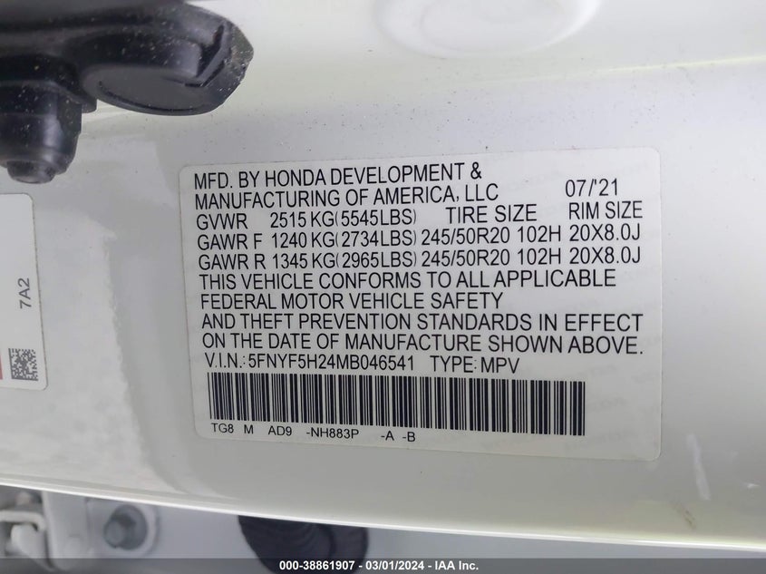 5FNYF5H24MB04654