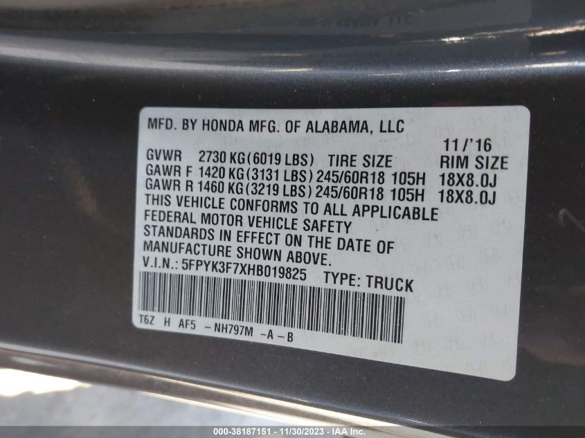 5FPYK3F7XHB01982