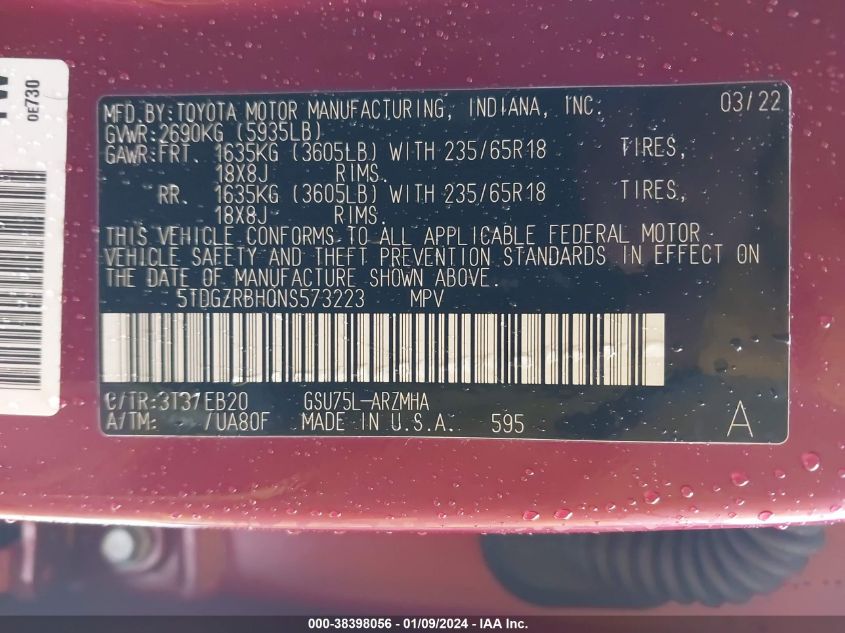 About this 2022 TOYOTA HIGHLANDER XLEThis 2022 TOYOTA HIGHLANDER XLE is part of our AUTOMOBILE vehicles. It's VIN code is - 5TDGZRBH0NS573223. Join the auto auction to bid on this 2022 TOYOTA HIGHLANDER XLE. Please note, the following damage may be present on the vehicle: FRESH WATER, which can be viewed more closely by examining the photos included on this page.As of now, the sale date is .Good luck bidding on this 2022 TOYOTA HIGHLANDER XLE!