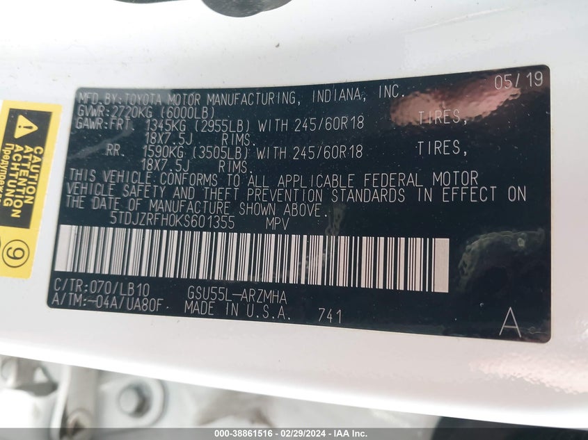 About this 2019 TOYOTA HIGHLANDER XLEThis 2019 TOYOTA HIGHLANDER XLE is part of our AUTOMOBILE vehicles. It's VIN code is - 5TDJZRFH0KS601355. Join the auto auction to bid on this 2019 TOYOTA HIGHLANDER XLE. Please note, the following damage may be present on the vehicle: RIGHT FRONT, which can be viewed more closely by examining the photos included on this page.As of now, the sale date is .Good luck bidding on this 2019 TOYOTA HIGHLANDER XLE!