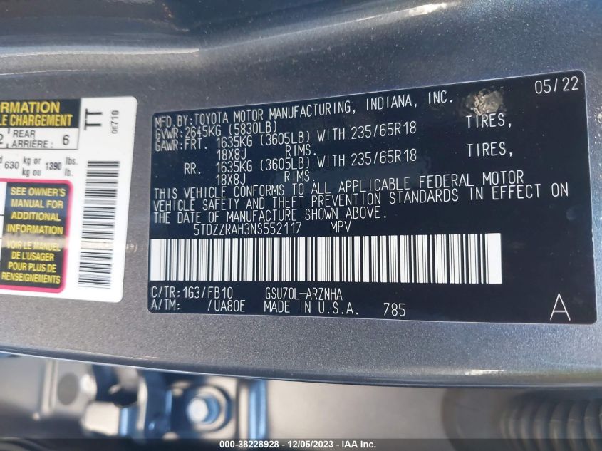 About this 2022 TOYOTA HIGHLANDER LEThis 2022 TOYOTA HIGHLANDER LE is part of our AUTOMOBILE vehicles. It's VIN code is - 5TDZZRAH3NS552117. Join the auto auction to bid on this 2022 TOYOTA HIGHLANDER LE. Please note, the following damage may be present on the vehicle: UNKNOWN, which can be viewed more closely by examining the photos included on this page.As of now, the sale date is .Good luck bidding on this 2022 TOYOTA HIGHLANDER LE!
