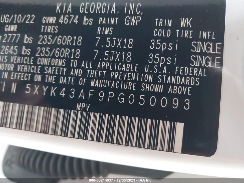 5XYK43AF9PG05009