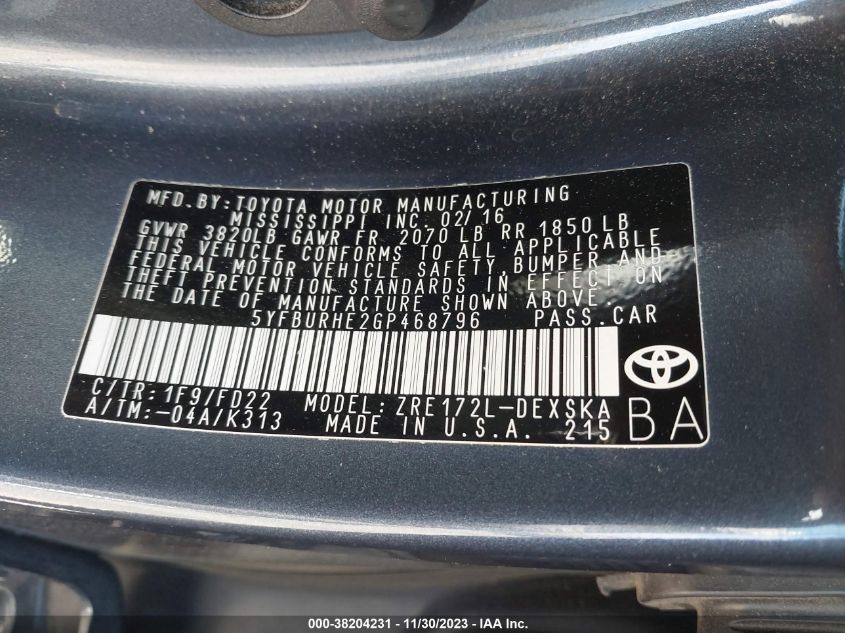 About this 2016 TOYOTA COROLLA S PLUSThis 2016 TOYOTA COROLLA S PLUS is part of our AUTOMOBILE vehicles. It's VIN code is - 5YFBURHE2GP468796. Join the auto auction to bid on this 2016 TOYOTA COROLLA S PLUS. Please note, the following damage may be present on the vehicle: FRONT END and Right Side, which can be viewed more closely by examining the photos included on this page.As of now, the sale date is 21.02.2024 17:30.Good luck bidding on this 2016 TOYOTA COROLLA S PLUS!
