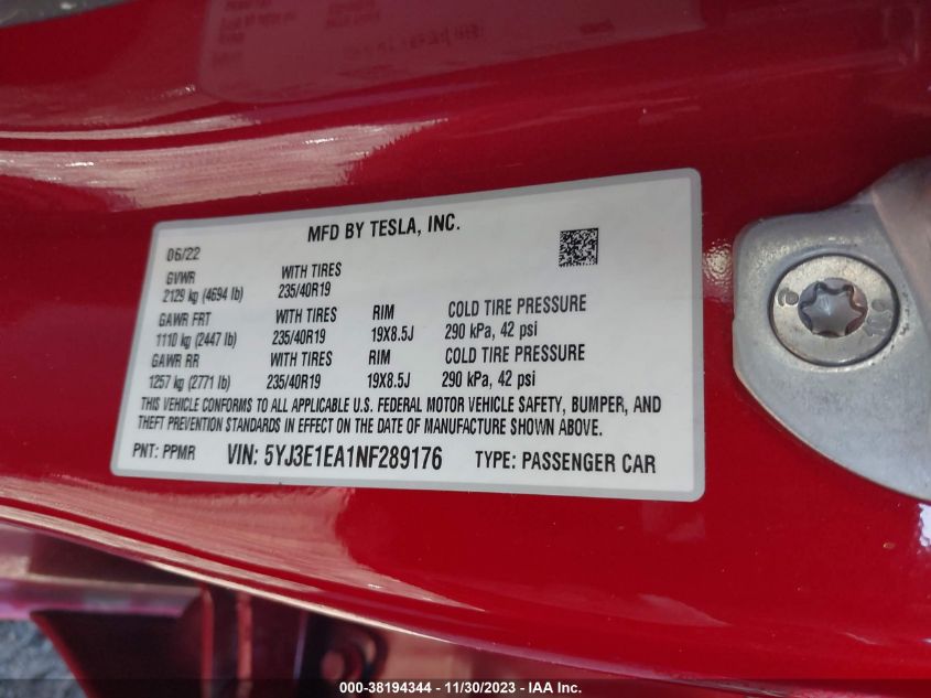 About this 2022 TESLA MODEL 3 REAR-WHEEL DRIVEThis 2022 TESLA MODEL 3 REAR-WHEEL DRIVE is part of our AUTOMOBILE vehicles. It's VIN code is - 5YJ3E1EA1NF289176. Join the auto auction to bid on this 2022 TESLA MODEL 3 REAR-WHEEL DRIVE. Please note, the following damage may be present on the vehicle: FRONT END and Unknown, which can be viewed more closely by examining the photos included on this page.As of now, the sale date is 02.01.2024 14:30.Good luck bidding on this 2022 TESLA MODEL 3 REAR-WHEEL DRIVE!