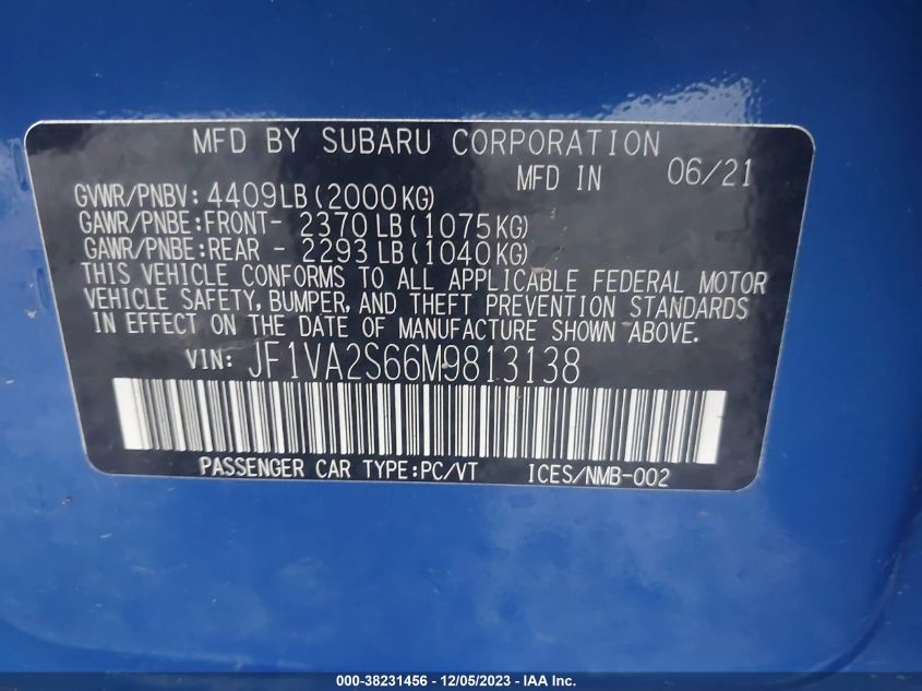 About this 2021 SUBARU WRX STI STIThis 2021 SUBARU WRX STI STI is part of our AUTOMOBILE vehicles. It's VIN code is - JF1VA2S66M9813138. Join the auto auction to bid on this 2021 SUBARU WRX STI STI. Please note, the following damage may be present on the vehicle: FRONT END and Mechanical, which can be viewed more closely by examining the photos included on this page.As of now, the sale date is 17.01.2024 17:30.Good luck bidding on this 2021 SUBARU WRX STI STI!