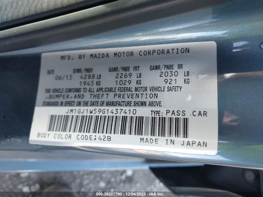 About this 2016 MAZDA MAZDA6 I GRAND TOURINGThis 2016 MAZDA MAZDA6 I GRAND TOURING is part of our AUTOMOBILE vehicles. It's VIN code is - JM1GJ1W59G1437410. Join the auto auction to bid on this 2016 MAZDA MAZDA6 I GRAND TOURING. Please note, the following damage may be present on the vehicle: FRONT END and Left Side, which can be viewed more closely by examining the photos included on this page.As of now, the sale date is 15.12.2023 14:30.Good luck bidding on this 2016 MAZDA MAZDA6 I GRAND TOURING!