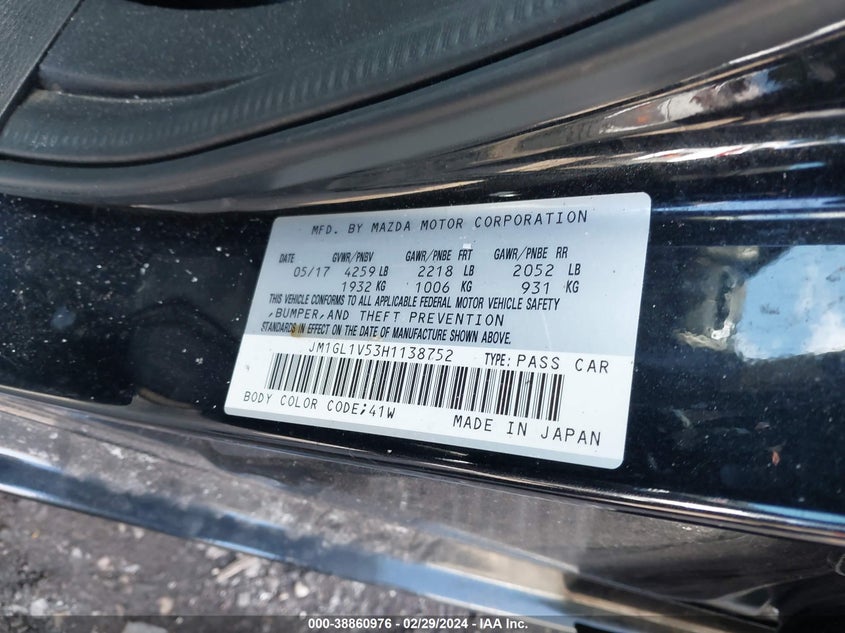 About this 2017 MAZDA MAZDA6 TOURINGThis 2017 MAZDA MAZDA6 TOURING is part of our AUTOMOBILE vehicles. It's VIN code is - JM1GL1V53H1138752. Join the auto auction to bid on this 2017 MAZDA MAZDA6 TOURING. Please note, the following damage may be present on the vehicle: FRONT & REAR and Left & Right Side, which can be viewed more closely by examining the photos included on this page.As of now, the sale date is 26.03.2024 13:30.Good luck bidding on this 2017 MAZDA MAZDA6 TOURING!