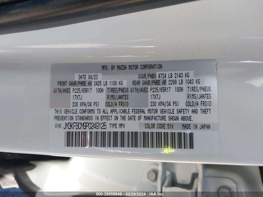 About this 2023 MAZDA CX-5 2.5 S PREFERREDThis 2023 MAZDA CX-5 2.5 S PREFERRED is part of our AUTOMOBILE vehicles. It's VIN code is - JM3KFBCM9P0249125. Join the auto auction to bid on this 2023 MAZDA CX-5 2.5 S PREFERRED. Please note, the following damage may be present on the vehicle: FRONT END and Unknown, which can be viewed more closely by examining the photos included on this page.As of now, the sale date is 12.06.2024 13:30.Good luck bidding on this 2023 MAZDA CX-5 2.5 S PREFERRED!