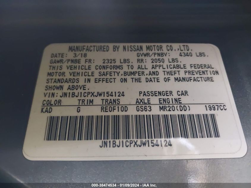 About this 2018 NISSAN ROGUE SPORT S/SV/SLThis 2018 NISSAN ROGUE SPORT S/SV/SL is part of our AUTOMOBILE vehicles. It's VIN code is - JN1BJ1CPXJW154124. Join the auto auction to bid on this 2018 NISSAN ROGUE SPORT S/SV/SL. Please note, the following damage may be present on the vehicle: UNKNOWN, which can be viewed more closely by examining the photos included on this page.As of now, the sale date is .Good luck bidding on this 2018 NISSAN ROGUE SPORT S/SV/SL!