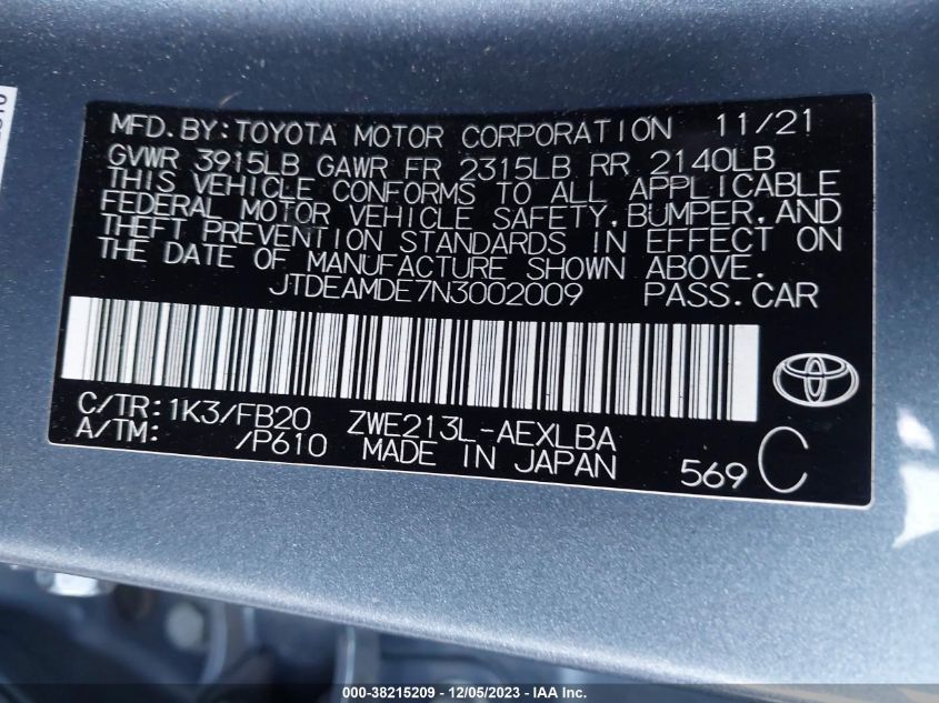 About this 2022 TOYOTA COROLLA LEThis 2022 TOYOTA COROLLA LE is part of our AUTOMOBILE vehicles. It's VIN code is - JTDEAMDE7N3002009. Join the auto auction to bid on this 2022 TOYOTA COROLLA LE. Please note, the following damage may be present on the vehicle: UNKNOWN, which can be viewed more closely by examining the photos included on this page.As of now, the sale date is .Good luck bidding on this 2022 TOYOTA COROLLA LE!