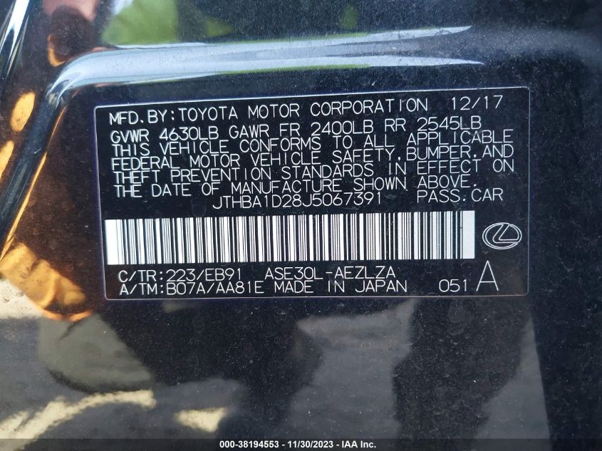 About this 2018 LEXUS IS 300This 2018 LEXUS IS 300 is part of our AUTOMOBILE vehicles. It's VIN code is - JTHBA1D28J5067391. Join the auto auction to bid on this 2018 LEXUS IS 300. Please note, the following damage may be present on the vehicle: RIGHT FRONT and Front End, which can be viewed more closely by examining the photos included on this page.As of now, the sale date is .Good luck bidding on this 2018 LEXUS IS 300!