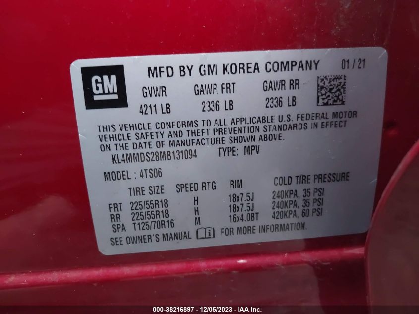 About this 2021 BUICK ENCORE GX FWD SELECTThis 2021 BUICK ENCORE GX FWD SELECT is part of our AUTOMOBILE vehicles. It's VIN code is - KL4MMDS28MB131094. Join the auto auction to bid on this 2021 BUICK ENCORE GX FWD SELECT. Please note, the following damage may be present on the vehicle: UNKNOWN, which can be viewed more closely by examining the photos included on this page.As of now, the sale date is .Good luck bidding on this 2021 BUICK ENCORE GX FWD SELECT!
