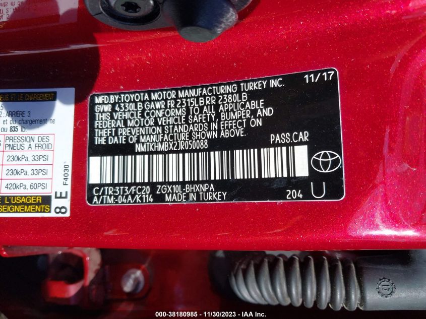 About this 2018 TOYOTA C-HR XLE PREMIUMThis 2018 TOYOTA C-HR XLE PREMIUM is part of our AUTOMOBILE vehicles. It's VIN code is - NMTKHMBX2JR050088. Join the auto auction to bid on this 2018 TOYOTA C-HR XLE PREMIUM. Please note, the following damage may be present on the vehicle: FRONT END, which can be viewed more closely by examining the photos included on this page.As of now, the sale date is .Good luck bidding on this 2018 TOYOTA C-HR XLE PREMIUM!