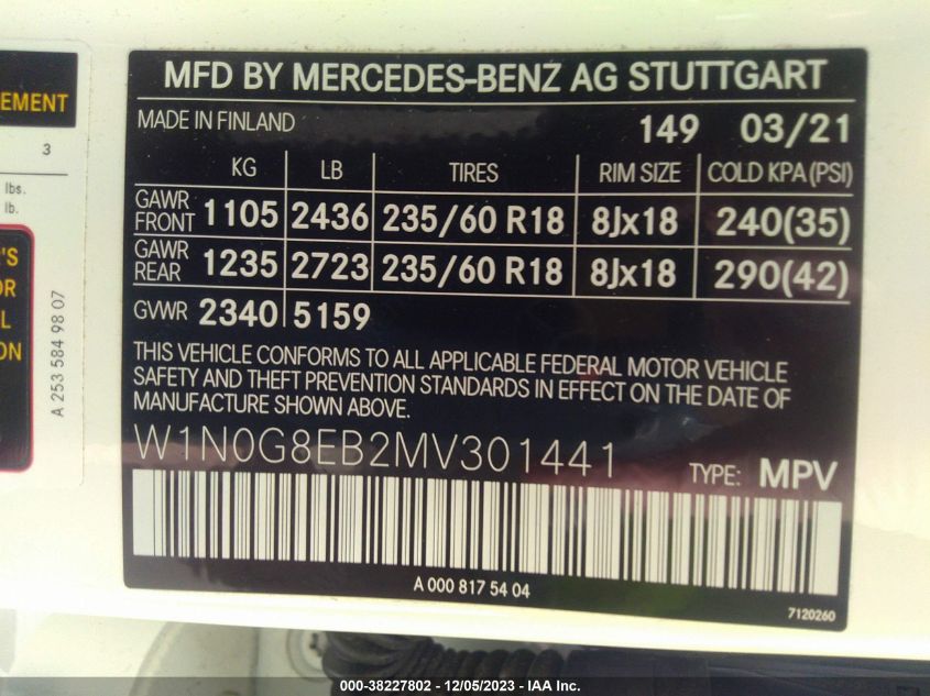 About this 2021 MERCEDES-BENZ GLC 300 SUVThis 2021 MERCEDES-BENZ GLC 300 SUV is part of our AUTOMOBILE vehicles. It's VIN code is - W1N0G8EB2MV301441. Join the auto auction to bid on this 2021 MERCEDES-BENZ GLC 300 SUV. Please note, the following damage may be present on the vehicle: FRONT & REAR, which can be viewed more closely by examining the photos included on this page.As of now, the sale date is 21.12.2023 14:30.Good luck bidding on this 2021 MERCEDES-BENZ GLC 300 SUV!