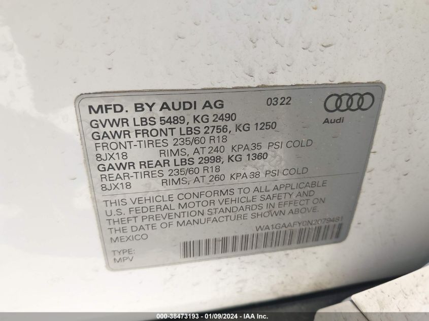 About this 2022 AUDI Q5 PREMIUM 45This 2022 AUDI Q5 PREMIUM 45 is part of our AUTOMOBILE vehicles. It's VIN code is - WA1GAAFY0N2079481. Join the auto auction to bid on this 2022 AUDI Q5 PREMIUM 45. Please note, the following damage may be present on the vehicle: UNKNOWN, which can be viewed more closely by examining the photos included on this page.As of now, the sale date is .Good luck bidding on this 2022 AUDI Q5 PREMIUM 45!