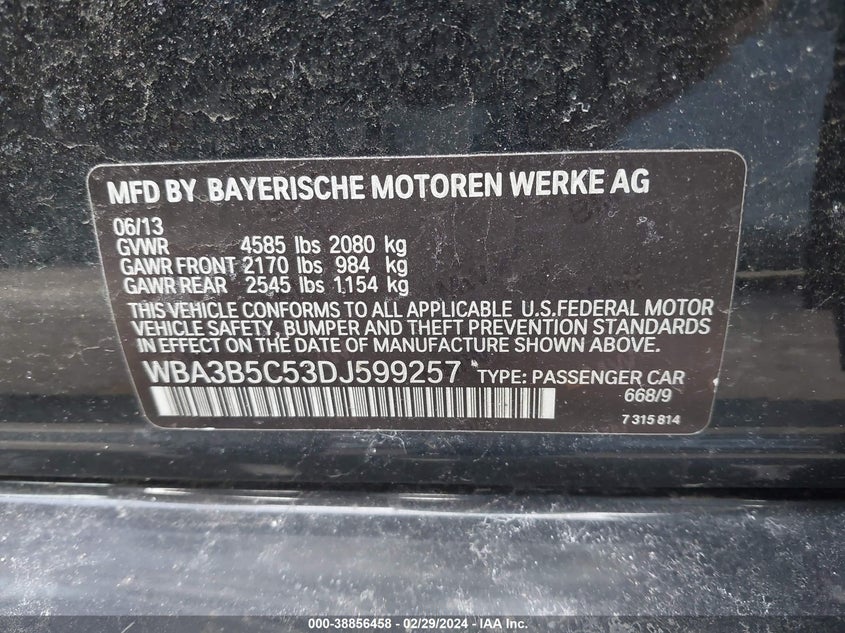 About this 2013 BMW 328I XDRIVEThis 2013 BMW 328I XDRIVE is part of our AUTOMOBILE vehicles. It's VIN code is - WBA3B5C53DJ599257. Join the auto auction to bid on this 2013 BMW 328I XDRIVE. Please note, the following damage may be present on the vehicle: FRONT END and Unknown, which can be viewed more closely by examining the photos included on this page.As of now, the sale date is .Good luck bidding on this 2013 BMW 328I XDRIVE!