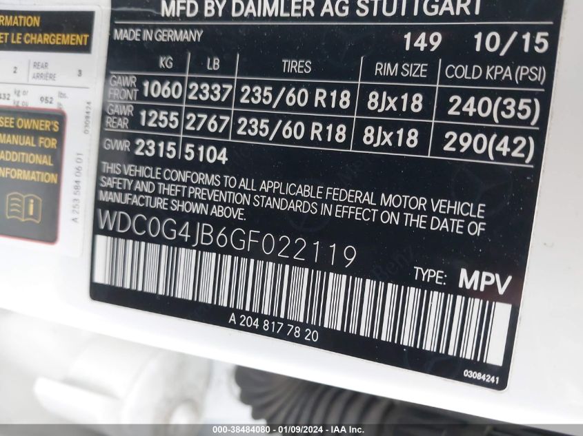 About this 2016 MERCEDES-BENZ GLC 300This 2016 MERCEDES-BENZ GLC 300 is part of our AUTOMOBILE vehicles. It's VIN code is - WDC0G4JB6GF022119. Join the auto auction to bid on this 2016 MERCEDES-BENZ GLC 300. Please note, the following damage may be present on the vehicle: UNKNOWN, which can be viewed more closely by examining the photos included on this page.As of now, the sale date is .Good luck bidding on this 2016 MERCEDES-BENZ GLC 300!